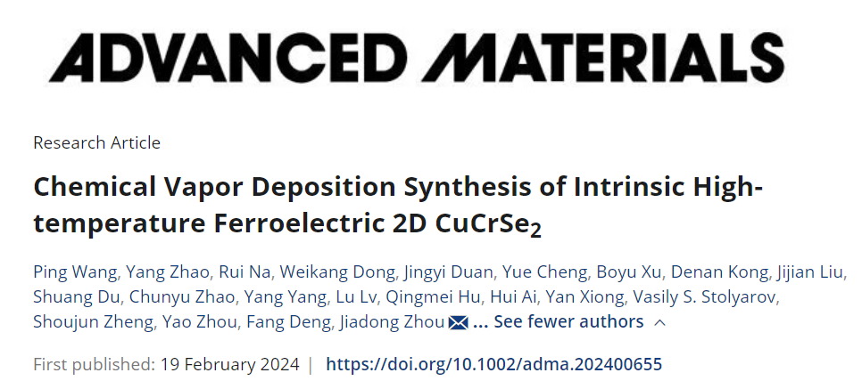 Chemical Vapor Deposition Synthesis of Intrinsic High-temperature Ferroelectric 2D CuCrSe2