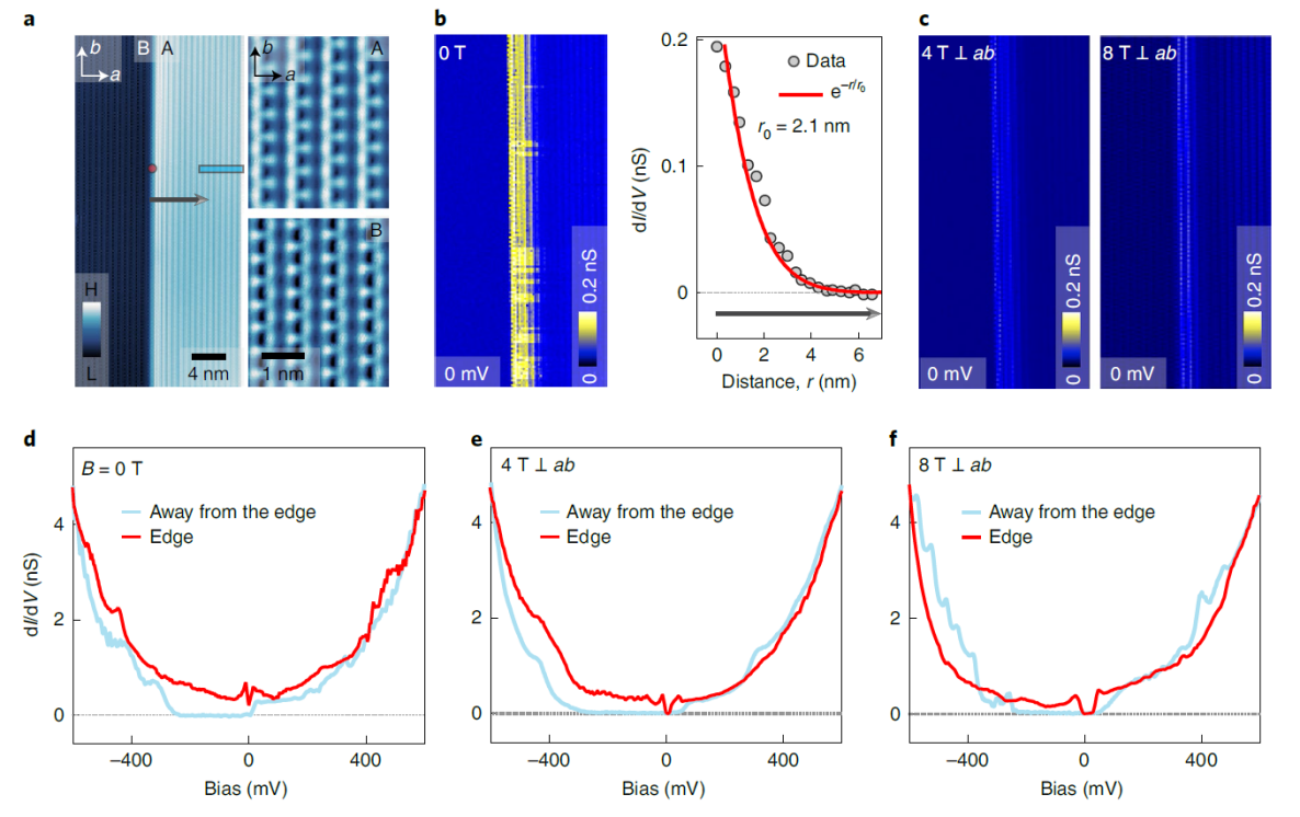 图2. 量子自旋霍尔边缘态的证据以及边缘态随外加磁场的响应