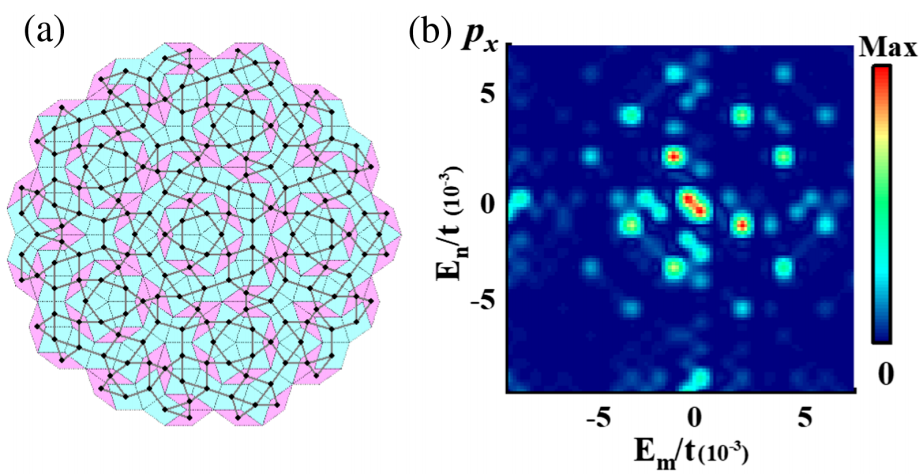 准晶是一种特殊的长程有序结构,它具有取向序但缺乏平移周期。自从1984年以色列物理学家D. Shechtman在现实材料中发现准晶结构以来,这种结构正逐步引起了凝聚态物理学界的广泛关注。最初,对准晶的研究主要集中在晶格几何以及晶格动力学。近年来,对准晶电子结构的研究逐步提上日程。该领域的关注焦点在于探寻存在于准晶结构当中的新型电子态。特别是,准晶结构能否诱导出在通常周期晶格中所禁戒的电子相?