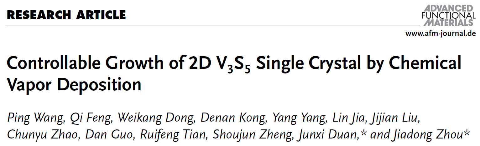 日前,44118太阳成城集团周家东教授与段俊熙副研究员开展合作,在二维钒基自插层硫族化合物的体系中,通过化学气相沉积方法,基于二元金属前驱体共反应机制,可控合成二维自插层V3S5晶体材料,并研究其相关物性。相关研究成果发表在国际顶刊《Advanced Functional Materials》上。