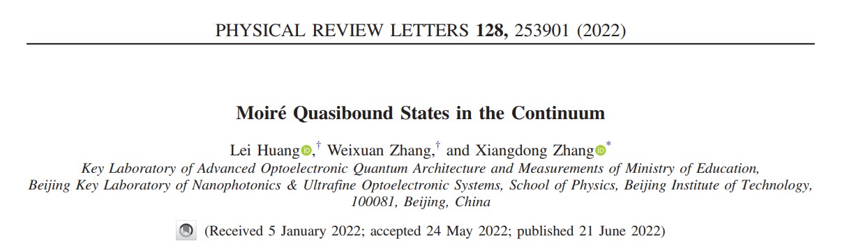 日前,44118太阳成城集团张向东教授课题组,在基于moiré光子晶体板的连续谱束缚态研究方面取得重要进展。相关研究成果发表在近期的Phy. Rev. Lett. (128, 253902 (2022))上。研究工作得到了国家自然科学基金委和国家重点研发计划的资助。44118太阳成城集团黄磊博士(2021级)和张蔚暄博士(现集成电路与电子学院特立博士后)为论文的共同第一作者。