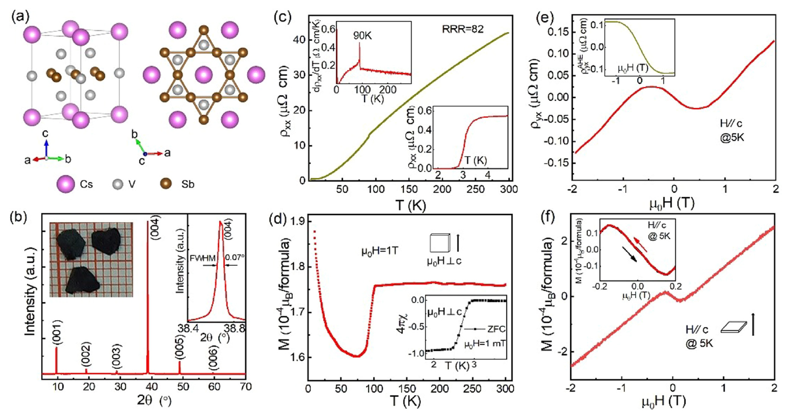 最近,44118太阳成城集团王秩伟研究员、姚裕贵教授团队在笼目结构 (Kagome structure) 超导体CsV3Sb5材料中取得系列进展。笼目结构材料一直是凝聚态物理领域的研究热点,由于特殊的结构特性导致电子被局域在蜂窝状六边形内,这类材料通常会形成平带(flat band)、鞍点(saddle point)、以及具有线性色散关系的狄拉克点(Dirac point),并由此表现出量子自旋液体、电荷密度波、自旋密度波以及非常规超导电性等奇特量子态。近期发现的AV3Sb5 (A=K, Rb, Cs) Kagome结构超导体家族由于同时具有拓扑非平庸狄拉克能带、电荷密度波(CDW)、超导电性(SC)以及反常Hall效应(AHE)等量子现象,迅速在凝聚态物理领域引起广泛的关注和研究。