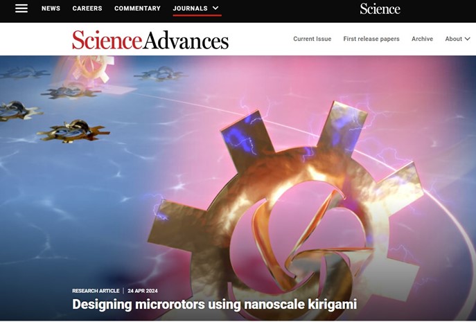 Xiaorong Hong#, Bingrui Xu#, Gong Li, Fan Nan, Xian Wang, Qinghua Liang, Wenbo Dong, Weikang Dong, Haozhe Sun, Yongyue Zhang, Chongrui Li, Rongxin Fu, Zhuoran Wang, Guozhen Shen, Yeliang Wang, Yugui Yao, Shuailong Zhang*, and Jiafang Li*. Optoelectronically navigated nano-kirigami microrotors. Science Advances, 10(17), adn7582 (2024).