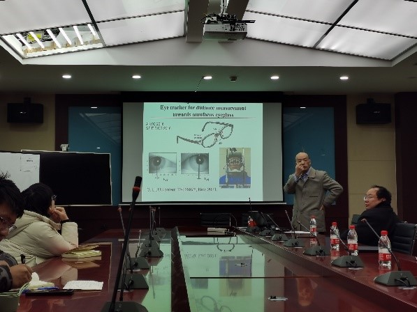 李国强教授在报告中提到:主动光学元件在视觉矫正与评估、光学成像以及智能感知领域有重要应用。首先,他介绍了基于液晶材料的变焦透镜、液体透镜、Alvarez 透镜在视光学中的应用,然后分别介绍自由曲面位相元件、MEMS 数字微镜阵列与变焦组合物镜在显微成像中的应用、基于可变偏振补偿器的激光扫描共焦偏振成像与临床应用等技术。报告过程中,李国强教授的讲解生动形象,其中,为老花眼、弱视等人群设计的智能眼镜,可自动调焦眼镜及青光眼探测仪等智能光学感知器件充分体现了科技对人类健康的重要贡献,为太阳成官网师生留下了深刻的印象。