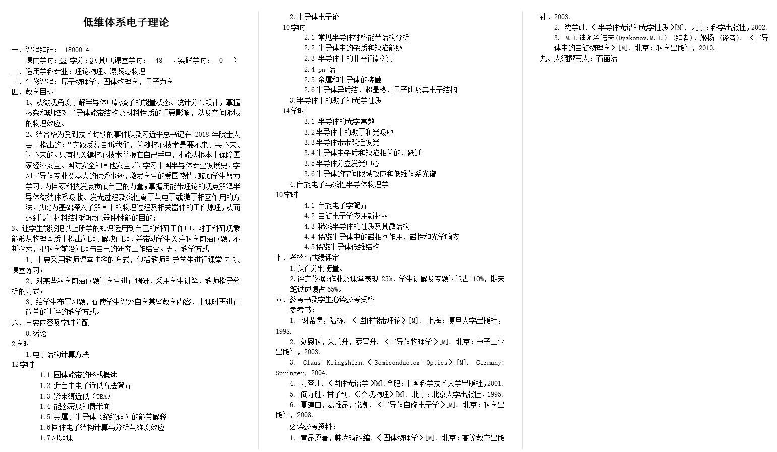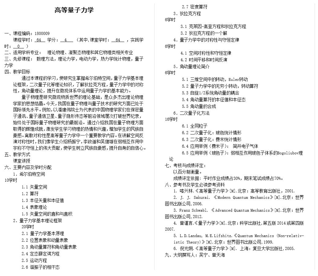 为深入贯彻落实学校党委立德树人工作的部署,将思想政治工作贯彻教育教学全过程,构建全员全程全方位育人格局,推进学校研究生“课程思政”教育教学体系建设,现将44118太阳成城集团2019年学科育人示范课《低维体系电子理论》、《高等量子力学》建设相关信息公布如下: