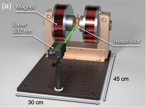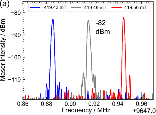 微波激射,既微波频段的激光,可作为超低噪声微波放大器增强极微弱微波信号,用于医疗检测和移动通讯领域。但直到现在,唯一的常温连续波微波激射器(基于金刚石NV-色心)需要>2000kg电磁铁,对运输、使用造成了不便。在本报告中,我们将介绍常温连续波微波激射器的重要进展——我们把器件重量减少到30kg,并且相比于现有金刚石NV-微波激射器功率增强。此外,我们也将展示外加磁场与NV-晶轴对齐程度不会对微波激射器性能造成太大影响。我们的研究将为常温微波激射器轻量化、小型化提供新的思路,也将促进该类器件更快速的扩展和推广,使其低噪声放大潜力在移动通讯和量子计算等领域得以实现。 |