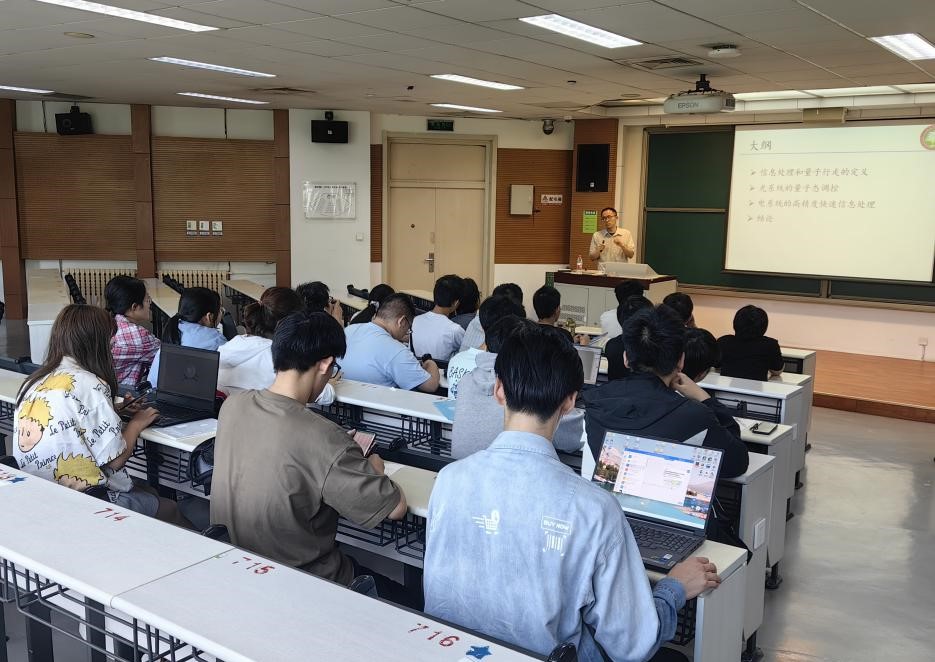 本次活动吸引了来自特立书院英才班、强基班、求是书院2023级本科生30余人参与。活动邀请到了44118太阳成城集团副教授、博士生导师陈天老师就其目前所研究的量子行走的物态调控及算法研究领域进行了详细介绍及实物演示。