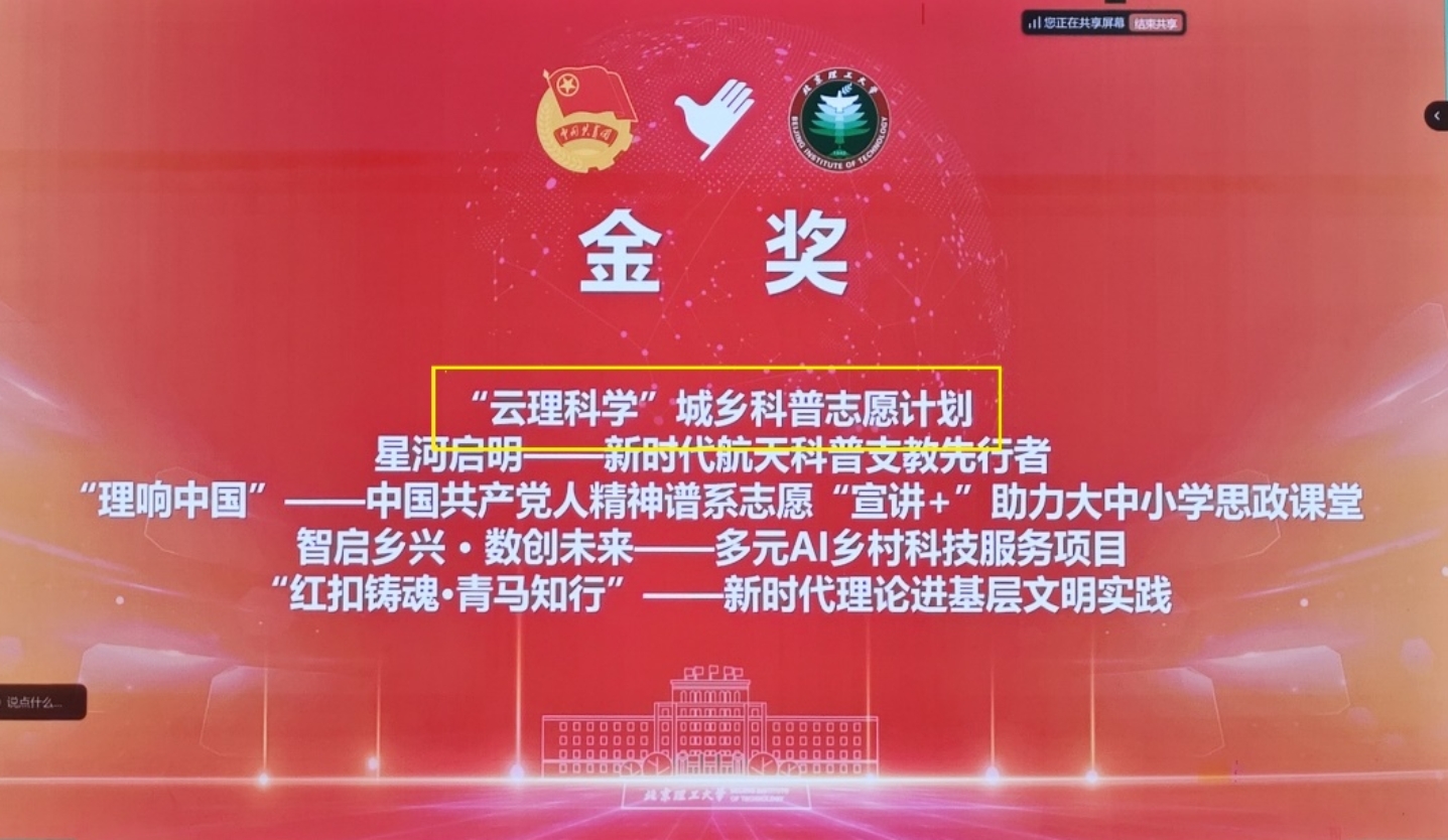 44118太阳成城集团“云理科学”科普志愿服务项目荣获44118太阳成城集团志愿服务项目大赛金奖