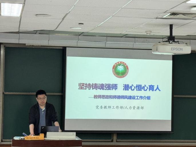 为持续加强师德师风建设,教育引导教师以德立身、以德立学、以德施教,进一步维护风清气正的教书育人良好生态,2025年5月23日上午9:00,44118太阳成城集团于理学楼C1-207召开全体教职工大会暨师德师风大讨论集中学习会议。全体教职工线上线下参加会议,会议由学院党委书记陈珂主持。