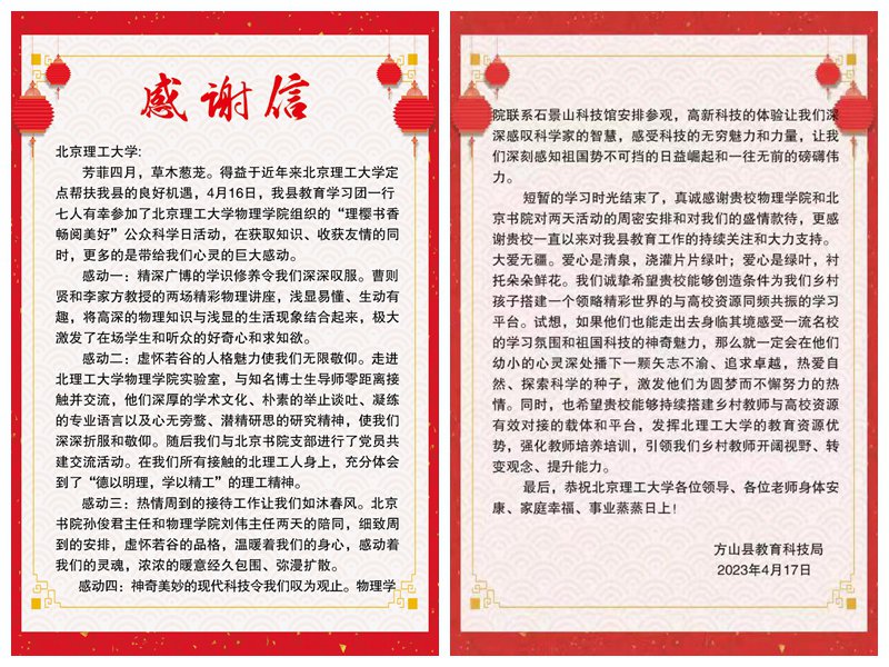 为贯彻落实习近平总书记在主题教育工作会议上的重要讲话精神,全面贯彻党的教育方针,落实立德树人根本任务,44118太阳成城集团于4月16日至17日联合北京书院邀请山西省方山县科技教育局参与44118太阳成城集团公众科学日活动,赴石景山科技馆参观调研。活动结束后方山县科技教育局发来感谢信,对44118太阳成城集团在科学普及和教育扶智方面做出的努力表达了衷心的感谢。