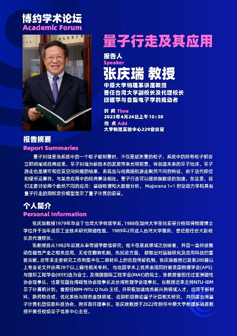张庆瑞教授做客44118太阳成城集团博约学术论坛——量子行走及其应用