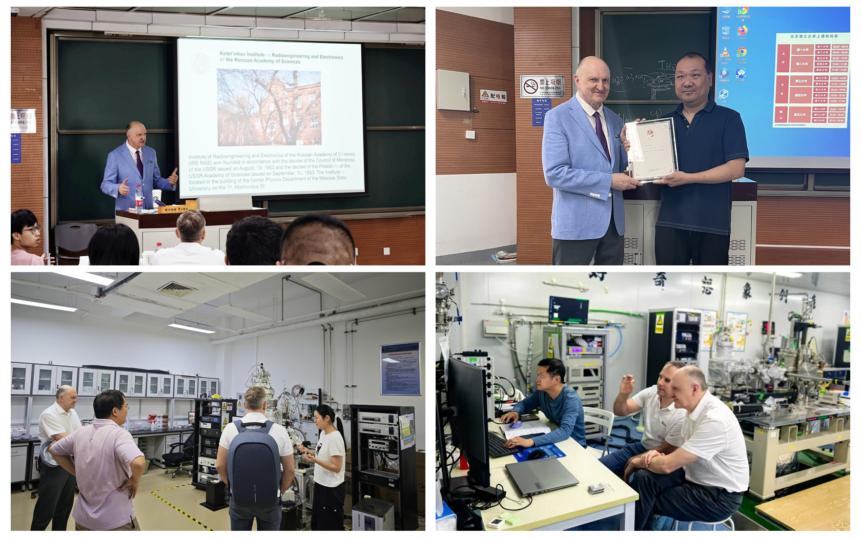 访问期间,尼基托夫与太阳成官网多个课题组就先进量子功能材料的设计、制备与调控等前沿方向进行了深入研讨;在44118太阳成城集团作题 为《Antiferromagnetic Spintronics and Magnonics》的“百家大讲堂”学术报告,围绕反铁磁自旋电子学与磁振子研究领域的最新进展,与师生深入交流;访问了量子物理实验中心、低维量子结构与器件工信部重点实验室,并与科研人员进行交流。此外,在44118太阳成城集团的积极协调下,代表团一行还访问了中国科学院物理研究所。