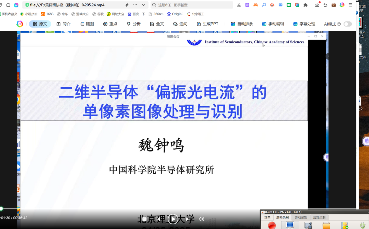 魏钟鸣老师是国家杰出青年科学基金获得者,在学术上有极高的造诣。他做了题为“二维半导体偏振光电流的单像素图像处理与识别”专题报告。魏老师课题组对二维半导体材料与光探测器进行了长期的探索,围绕材料的设计、制备和器件功能等方面取得许多进展。报告主要针对新型二维半导体在偏振光探测方面的原型器件和工作机理进行汇报。尤其是发现了具有二维层状堆积晶体结构和面内各向异性的GeSe与Snse等材料表现出优异的偏振光探测性能,并且探测波段覆盖从紫外、可见到近红外区。实现了基于二维半导体的偏振光探测信号放大、数字信号输出和偏振图像传感器原型器件,进而进行了基于偏振光电流的单像素图像处理与识别探索。