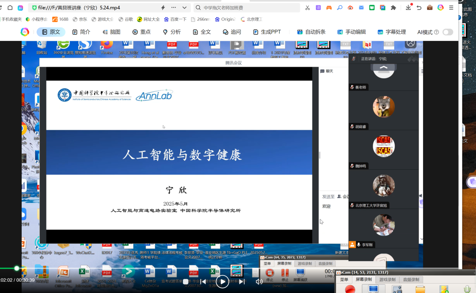 宁欣老师是半导体所人工智能与高速电路实验室副主任。他首先做了题为“人工智能与数字健康“的精彩报告,吸引了同学们广泛的兴趣。针对目前从”以治病为中心“ 向 ”以人民健康为中心“的需求转变,报告介绍了人工智能技术基础,在此基础上深度探讨了物理治疗、人体数字化建模、中医经络调理机器人、数字健康大模型以及医工融合应用系统等应用上的人工智能技术。