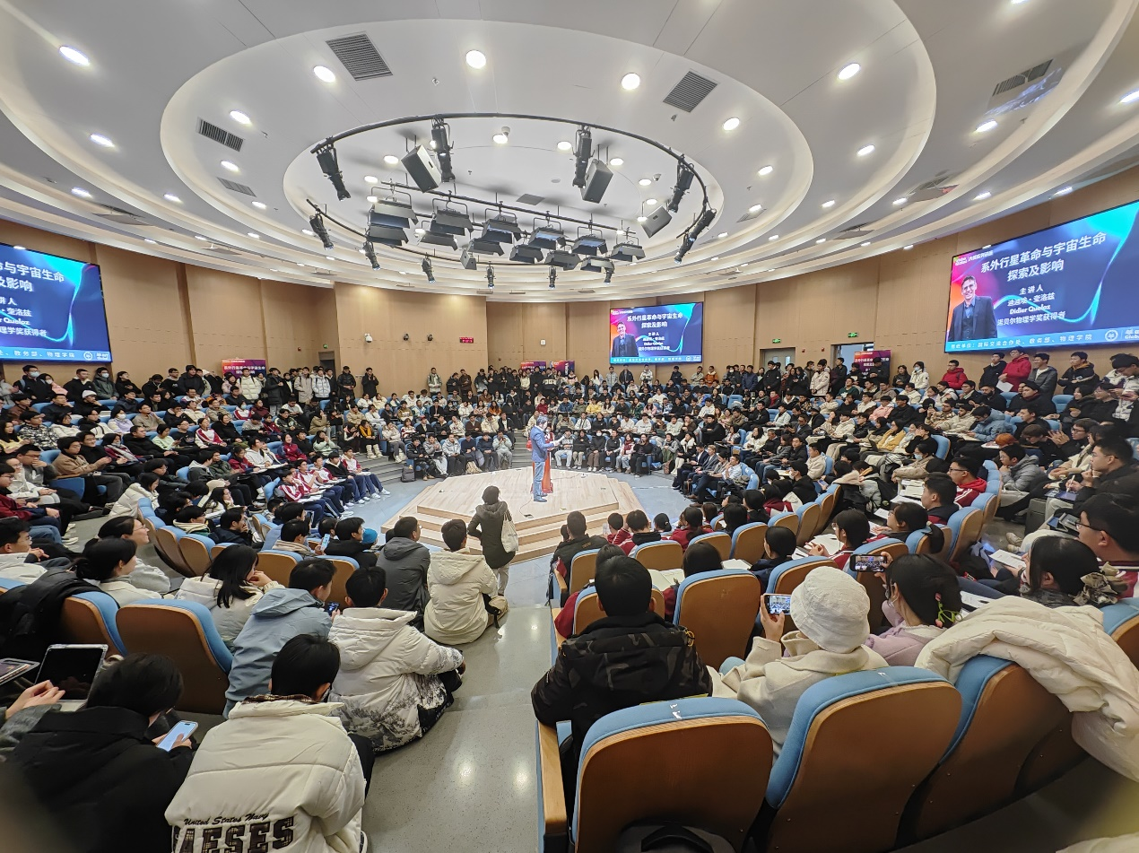 接待会后,奎洛兹在文萃楼圆形报告厅为太阳成官网师生举办了主题为“系外行星革命与宇宙生命探索及其影响”的“Vision Global大师讲座”。他介绍了自己是如何发现了第一颗围绕类日恒星运行的系外行星“飞马座51b”,并展示了系外行星发现领域的最新动态。太阳成官网师生共同聆听并与大师进行深度互动,气氛热烈。奎洛兹对科学的热情与对未来的希望激励了在场的每一位师生。讲座由44118太阳成城集团副院长李家方主持。